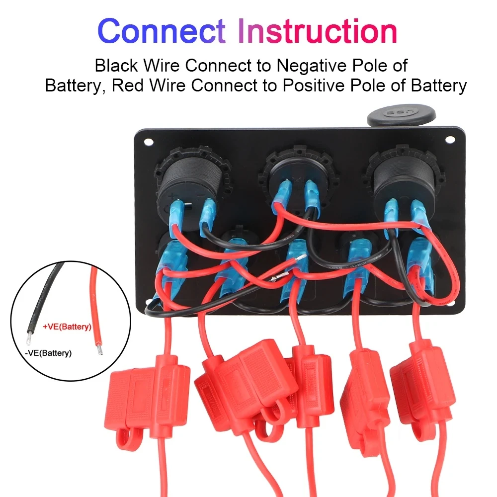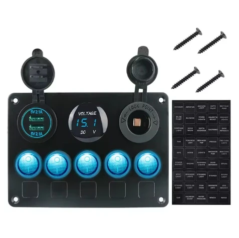 12V/24V 5 BUTTONS SWITCH PANEL WITH USB CHARGER ,SPLITTER VOLT TEST 234391-2 (SKU 38-142) Features: